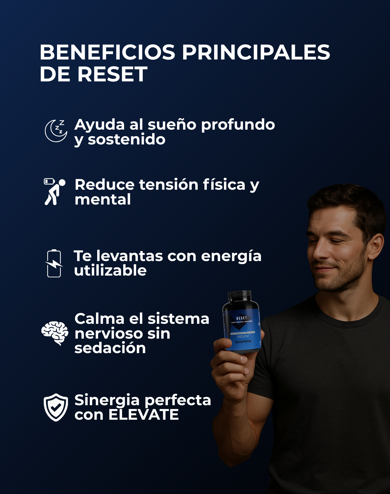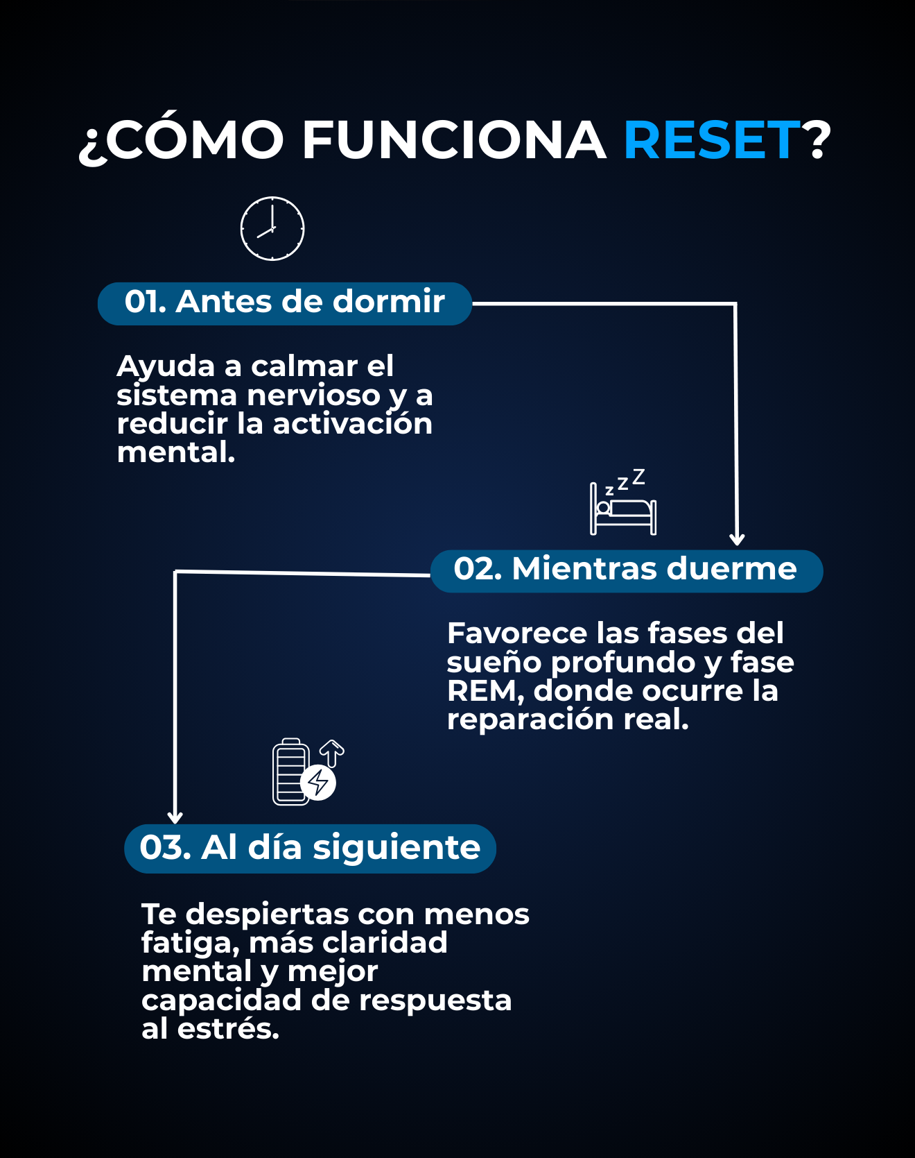 Reset combina 4 ingredientes naturales respaldados por evidencia científica para ayudarte a: